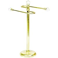 Very nice, shiny, and heavyweight enough not to tip over easily. One arm angles down slightly, the other angles up slightly. I carefully braced it and bent each arm just a tad so they were parallel. I don't advise it to anyone else as they may possibly break off. I keep mine on the bath room counter to drape my face cloth over the whole top to dry. Nicely matches my other shiny brass bath fittings, decor, faucet, etc. Very happy with my purchase!