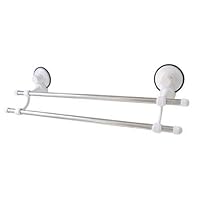 Buy 1pc New Suction Cup Chrome Plated Towel Rack Bar with 2 Bars Adjustable Sucker Cup Now