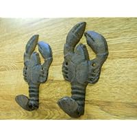 Pair Cast Iron Lobster Crawfish wall hook TWO PIECE