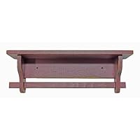 I purchased this shelf to complete my ensemble on my wall. It arrived well before the expected date and was wrapped nice and snug so there was no damages. The color on the computer is a little off. It actually is a beautiful dark barn red and would go perfect with just about any decor. The shelf measures 24" or 2 Foot wide which is perfect for displaying other small knick-knacks. The bottom rod slips completely through from one side or the other so there is easy access to put a display quilt on it. Love it!