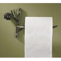 This toilet paper holder fits with the up north pine cone look of the bathroom and is sturdy and functional.