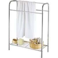 I had to return a towel stand to Bed Bath & Beyond and had a hard time finding a good one. I purchased this from Amazon. It was very easy to assemble and is of good quality. It fits my small guest bedroom well, and towels hang well. I like that the towels are not hanging to the ground since there is a base. My only complaint is that the two side hangers are small for average size towels so the towels touch the base, but I knew this from other reviews when I purchased it, I don't mind folding the towels prior to hanging. Overall I am happy with the purchase, and you cannot beat the price.Want Home Basix BC15C-CH-3L Towel Stand with Shelf Discount?